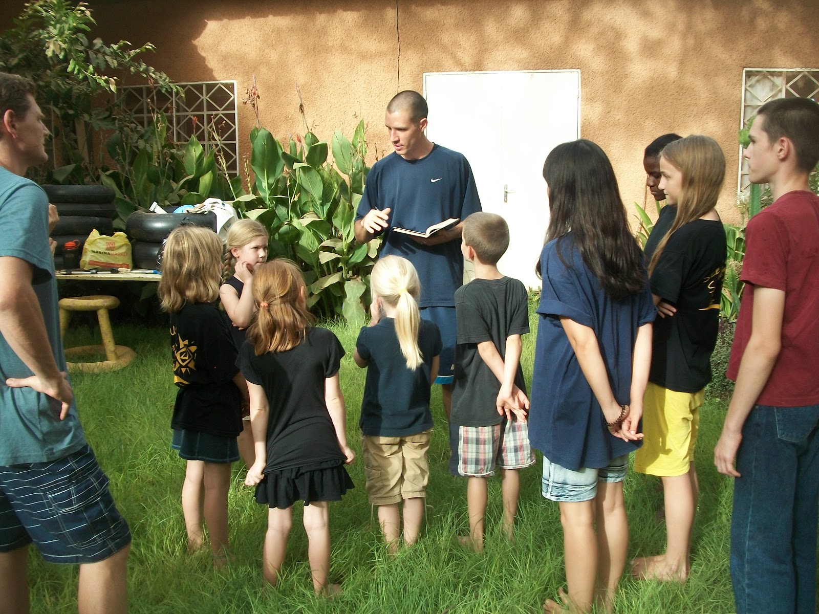 We have sixteen kids in the dorm this year, plus our own two. That makes eight rooms of kids to say good night to. At 7:30 we say good-night to our own kids, Mikaylah and Jayson.